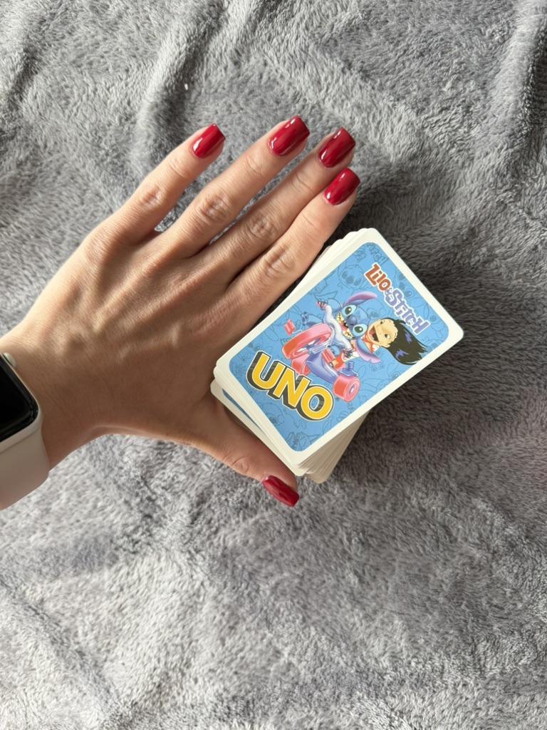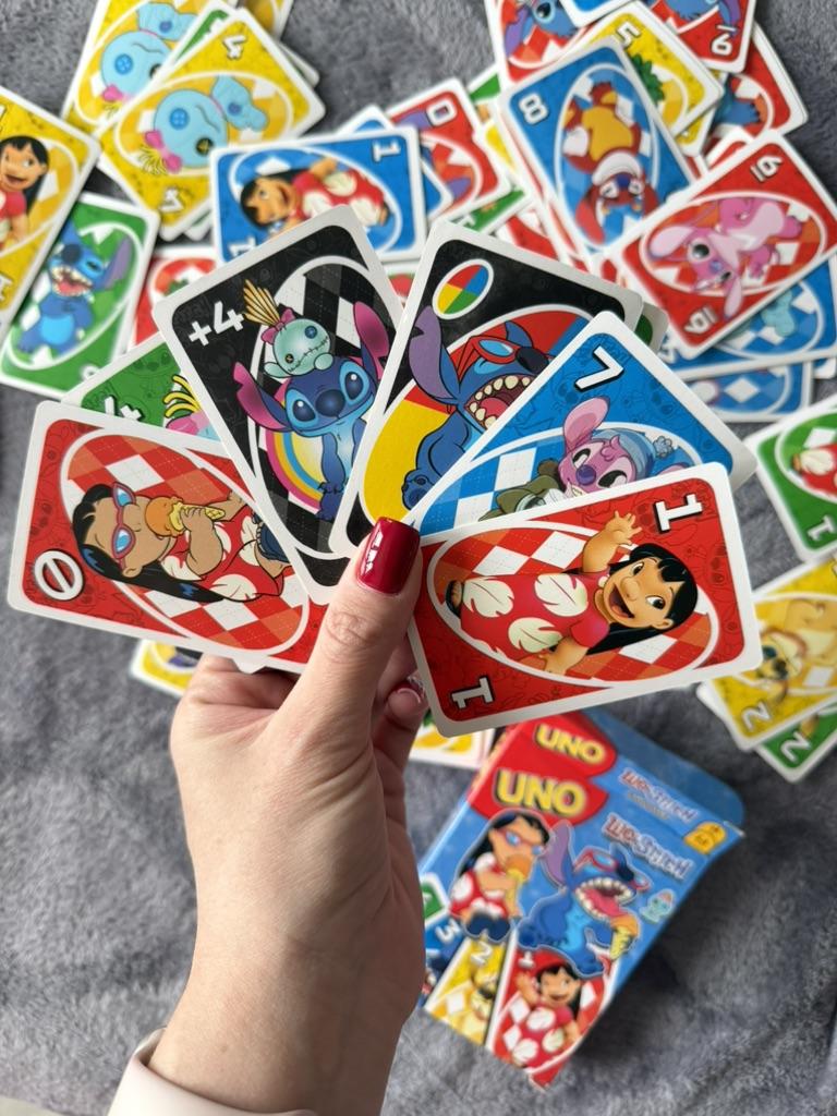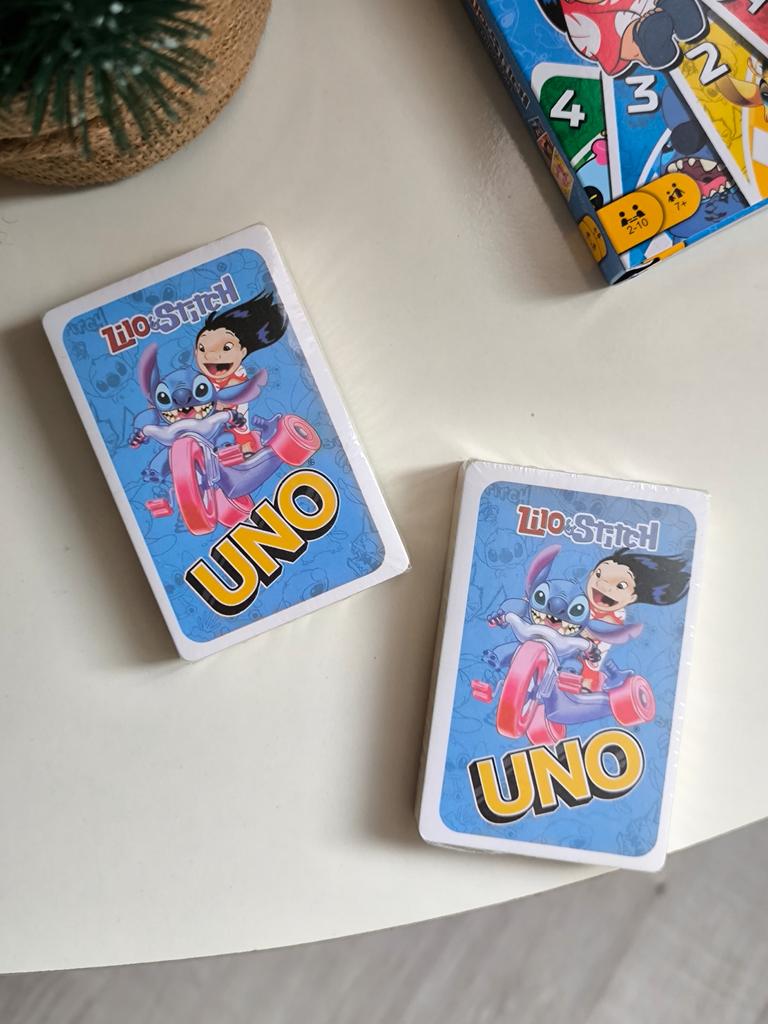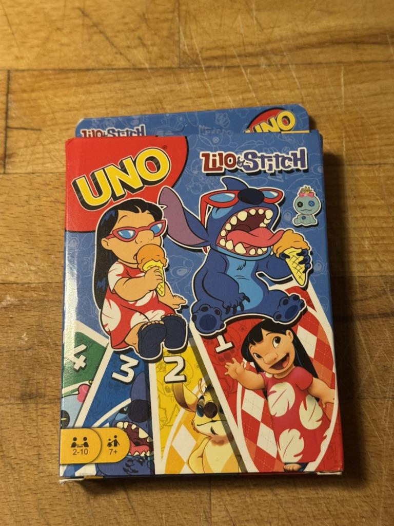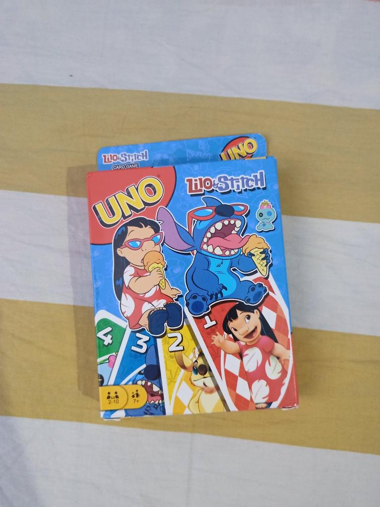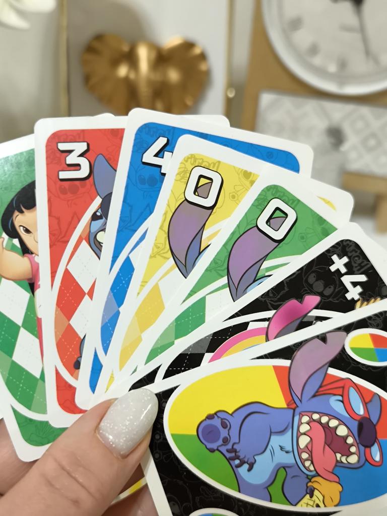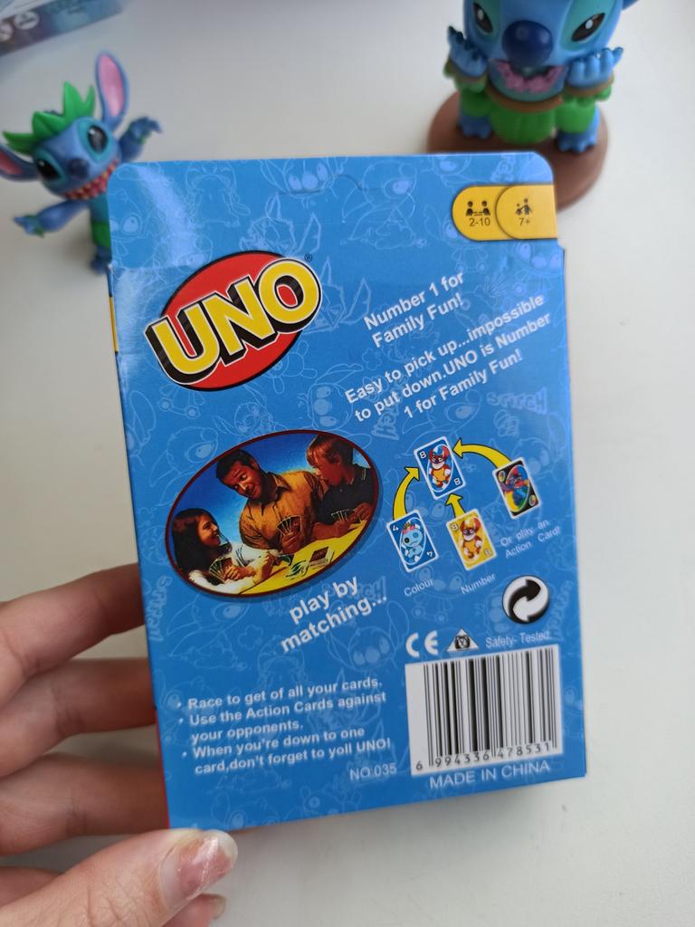 UNO Cards Lilo & Stitch version Cool game. The point is to get rid of all your cards by discarding those that match in color or number. And the main fun: don't forget to say "Uno!" when you have one card left. The quality is good, the cards are made of cardboard Interesting and very fun for both children and adults. The price is great. I recommend ๐ค