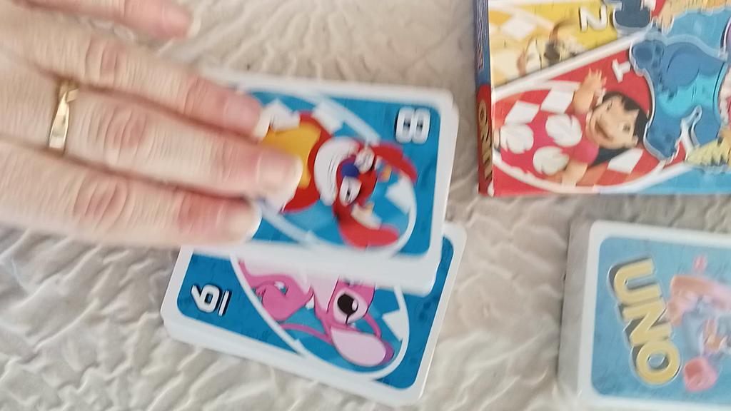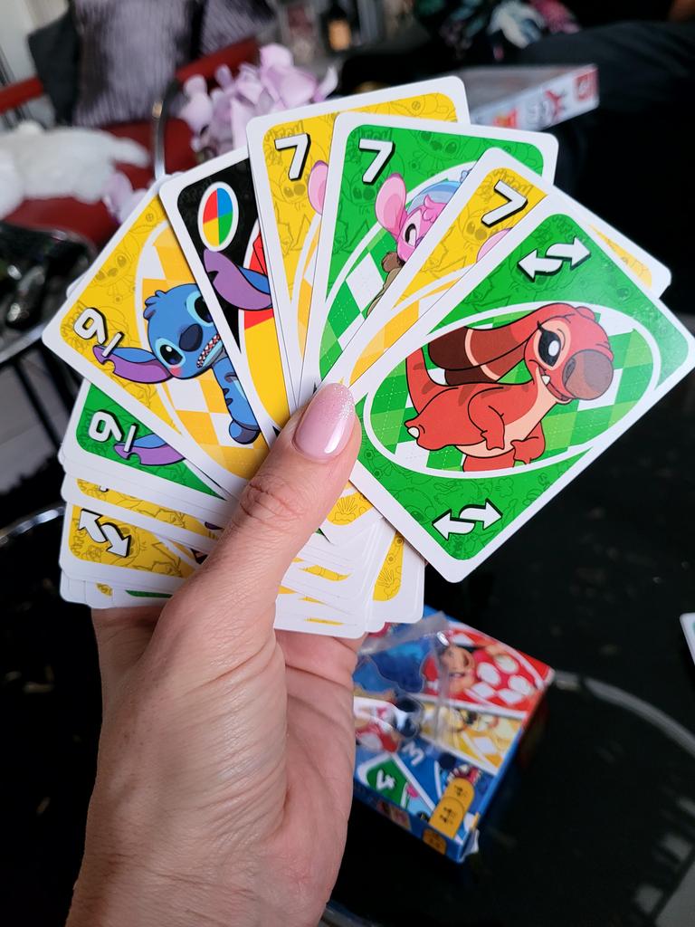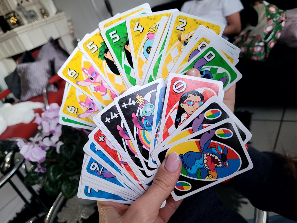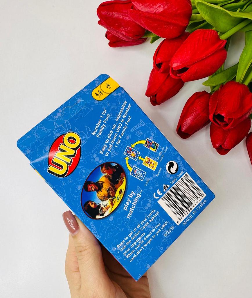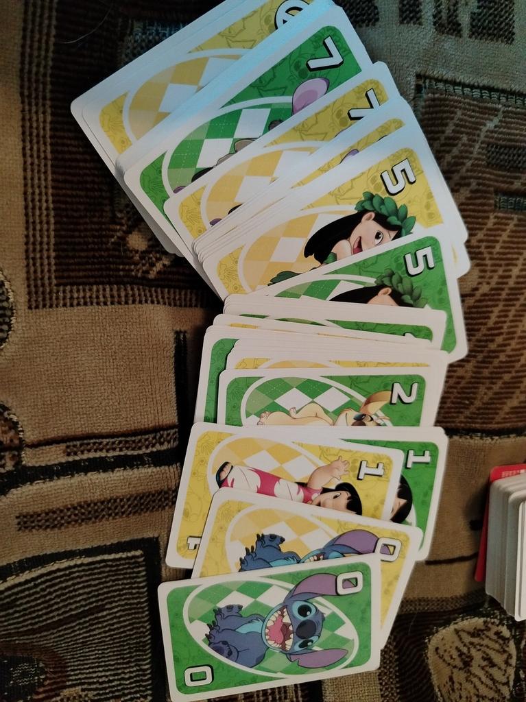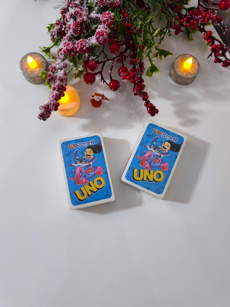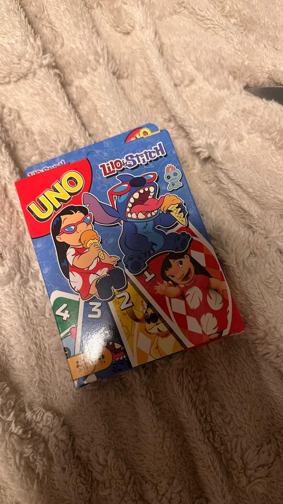 UNO Cards Lilo & Stitch version Cool game. The point is to get rid of all your cards by discarding those that match in color or number. And the main fun: don't forget to say "Uno!" when you have one card left. The quality is good, the cards are made of cardboard Interesting and very fun for both children and adults. The price is great. I recommend ๐ค