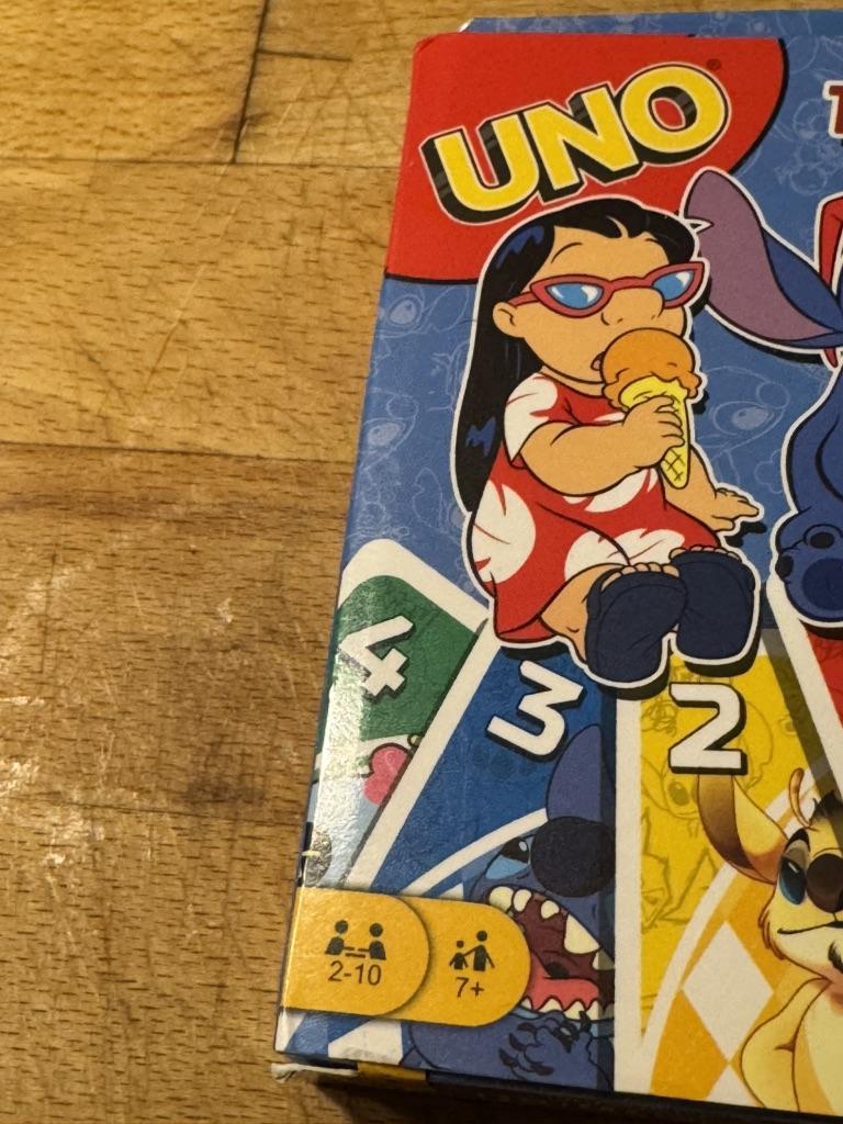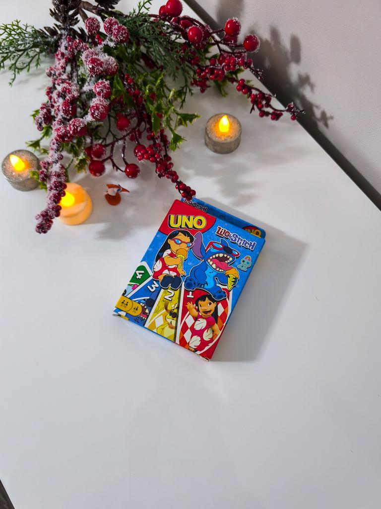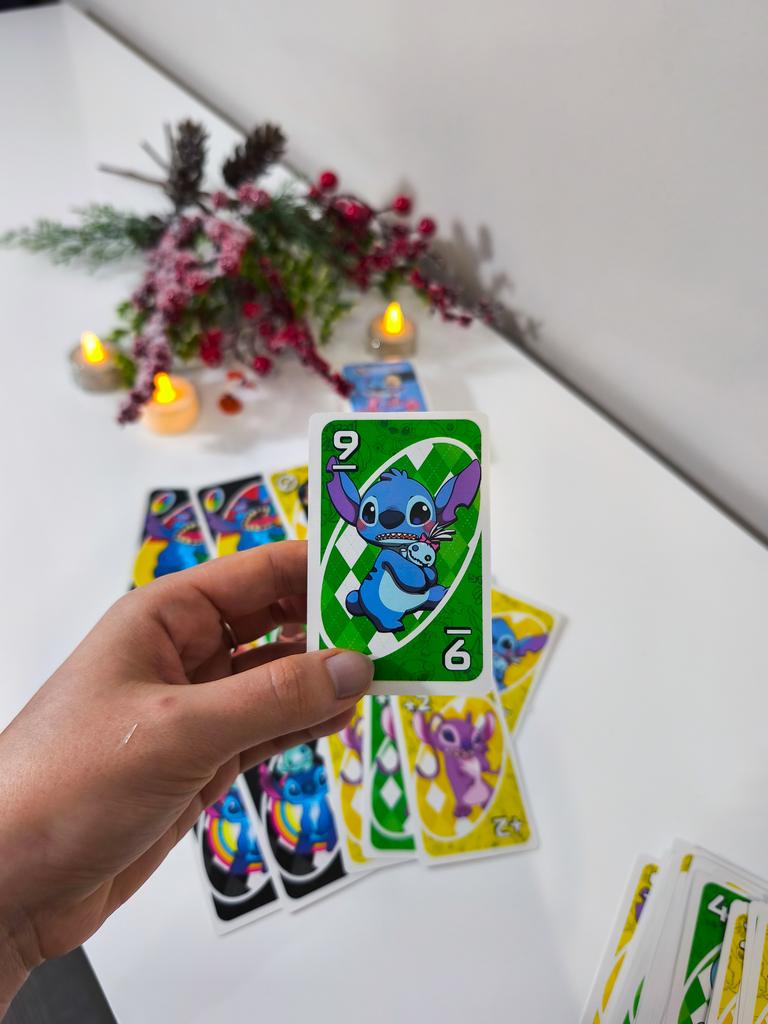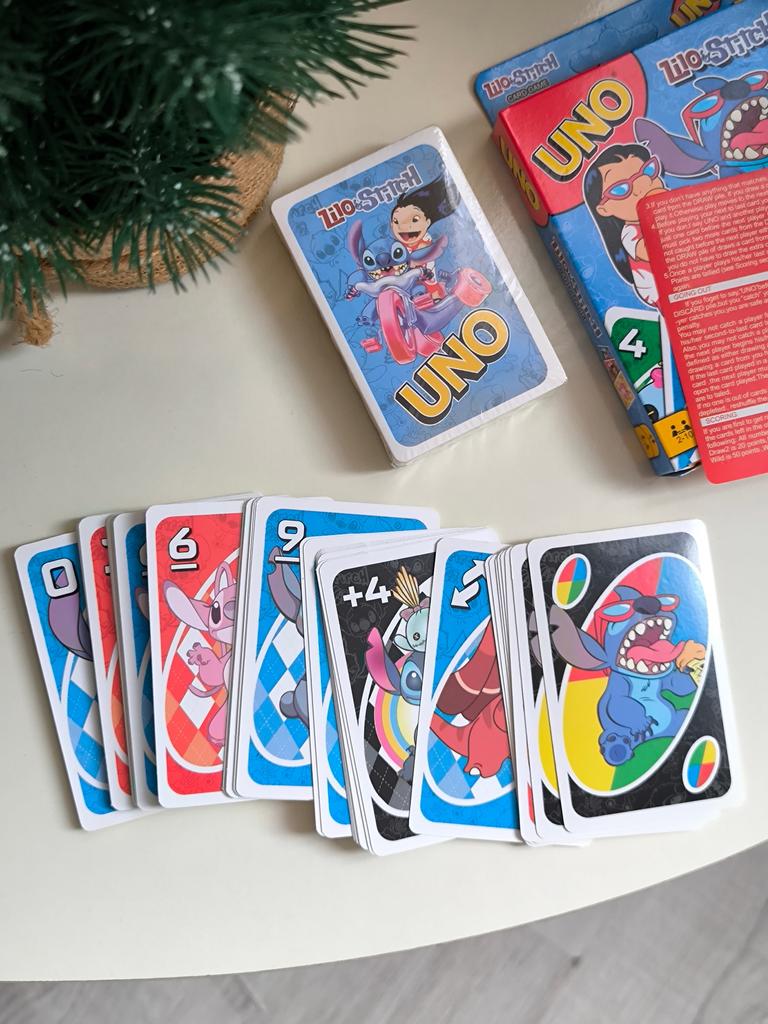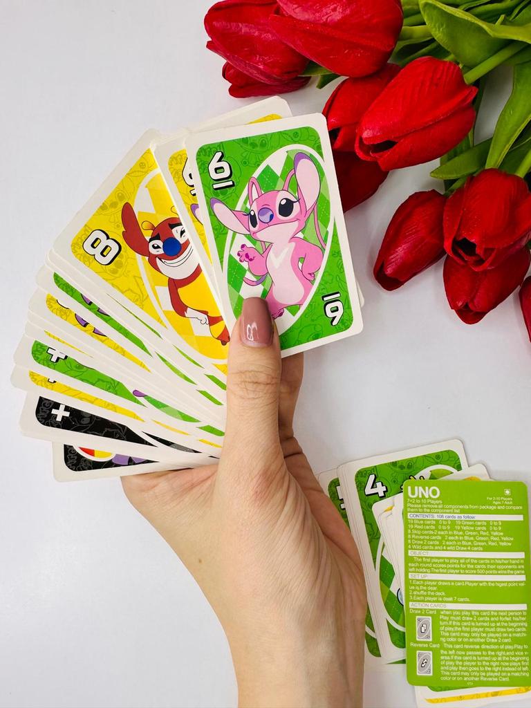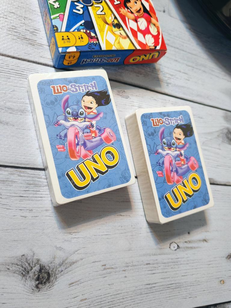 โค๏ธ๐The UNO card game "Stitch Family" with 108 cards is an excellent option for a fun time with the whole family. The cards are bright, printed with high quality, with clear images of the characters, which makes the game especially appealing to children and fans of the "Lilo & Stitch" cartoon. The game is easy to learn, the rules are understandable even for younger ages. It is suitable for 2โ4 players, holds attention, and adds an element of strategy and fun. The cards are pleasant to the touch, shuffle well, and do not bend during normal use..
