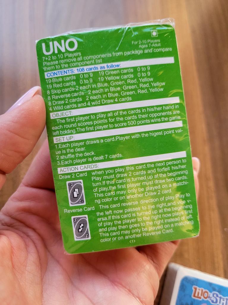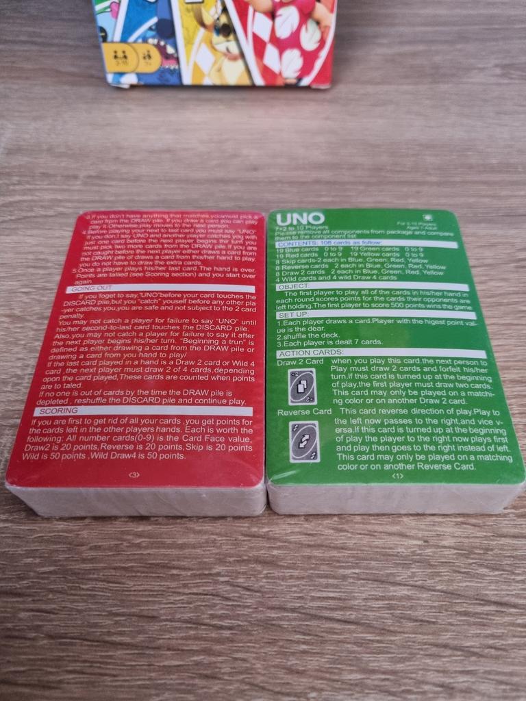 The cutest Uno card deck Fans of Lilo & Stitch will definitely like it :) the pictures are bright, high-quality, the cardboard is thick. There is a leaflet with the rules in the box. The cards themselves are small, smaller than regular playing cards, they fit into the box in two stacks, this is probably the only downside. For this price, it's just super :) definitely recommend