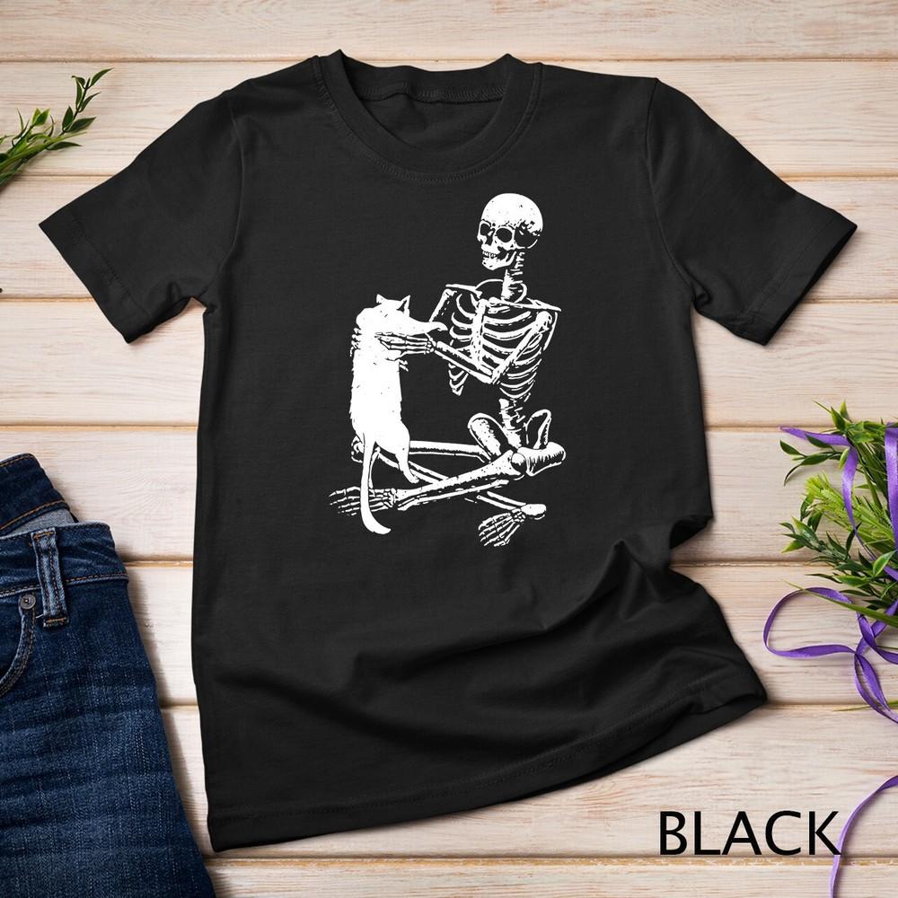 Skeleton Holding Cat Scary Costume Skull Kitten Halloween Tee Unisex T-shirt