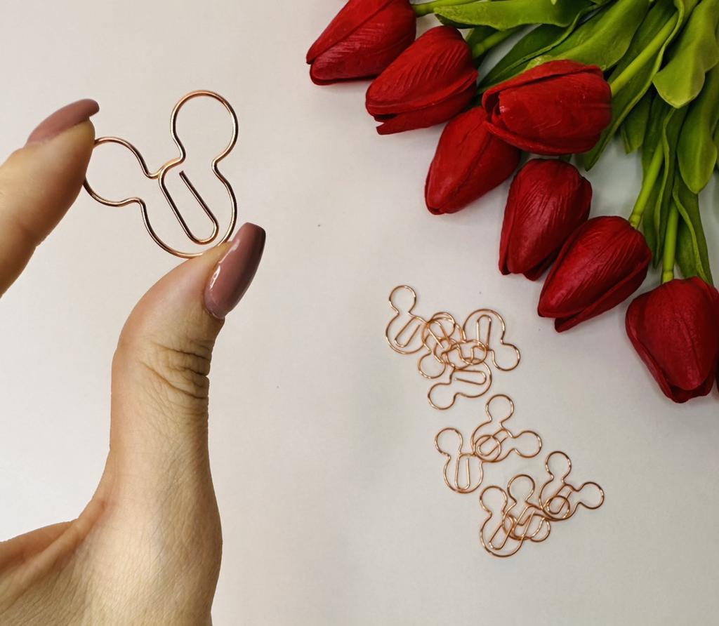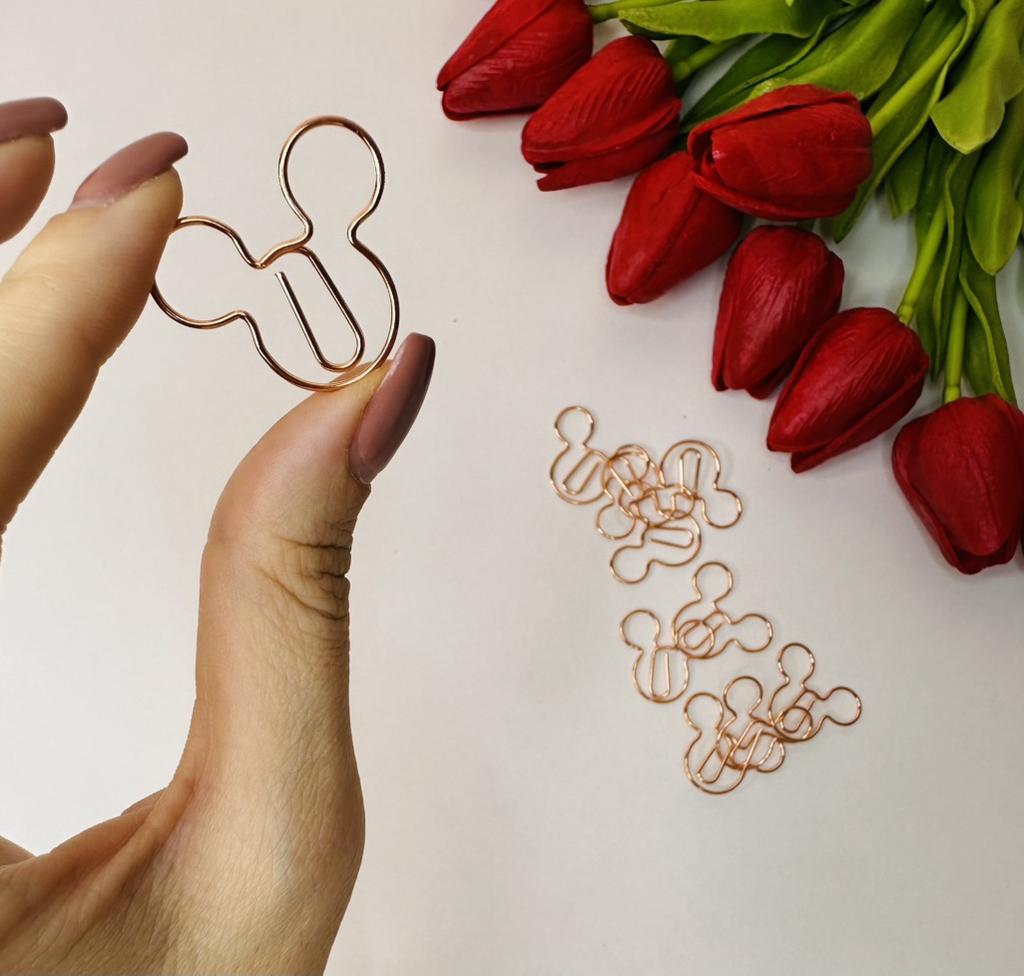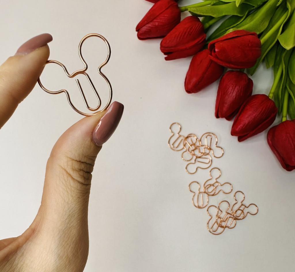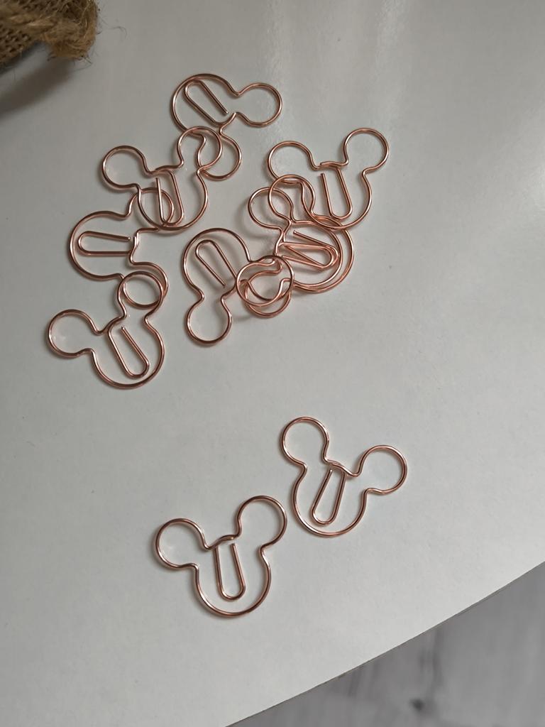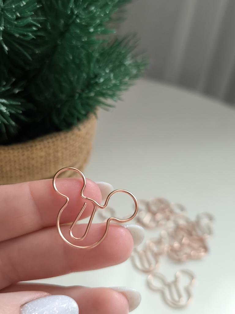 ๐บ Paperclips ๐บPaper clips are made in the shape of Mickey Mouse, from thick golden wire. ๐บIn the set of 10 pieces, strong. ๐บUnusual, can be used as a bookmark.๐๐๐๐