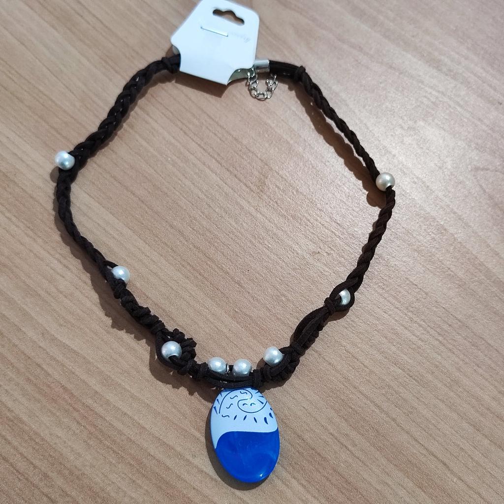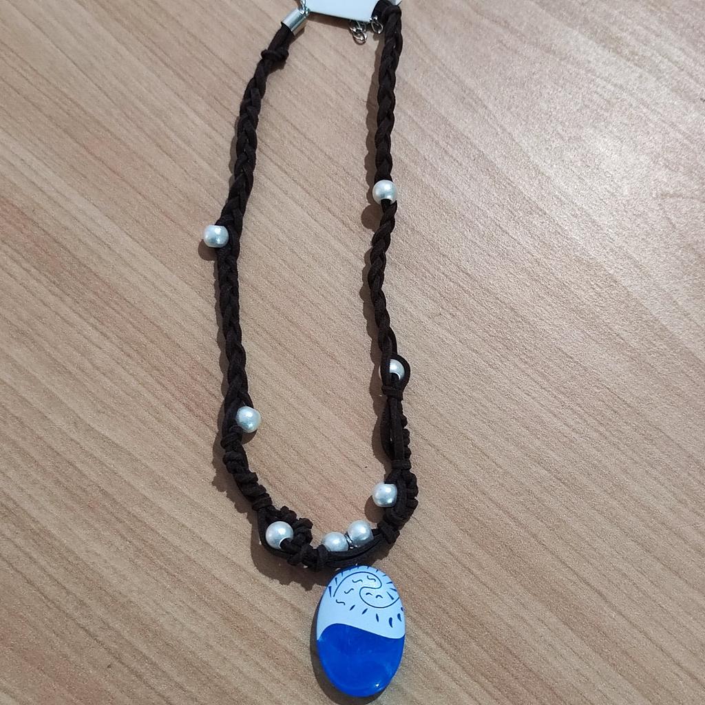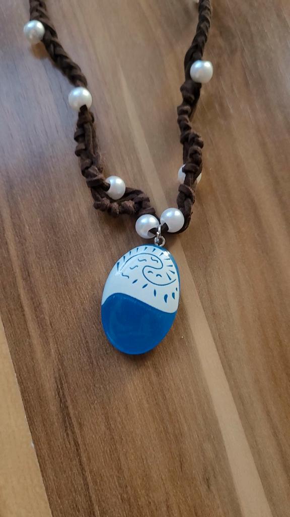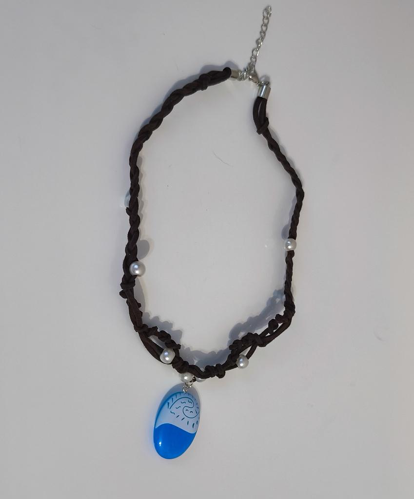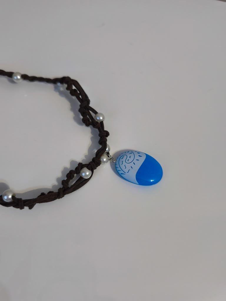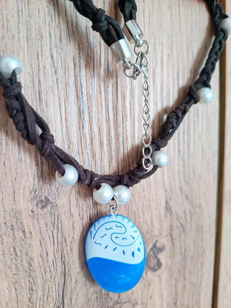 Cosplay necklace inspired by the animated film "Moana" by MINISO. The necklace features a hand-braided leather cord, which gives it a natural and unique look.. Especially suitable for women and girls who love jewelry with a unique style and accessories inspired by beloved characters. A fashionable and useful accessory that will upgrade any look and give it a special touch.