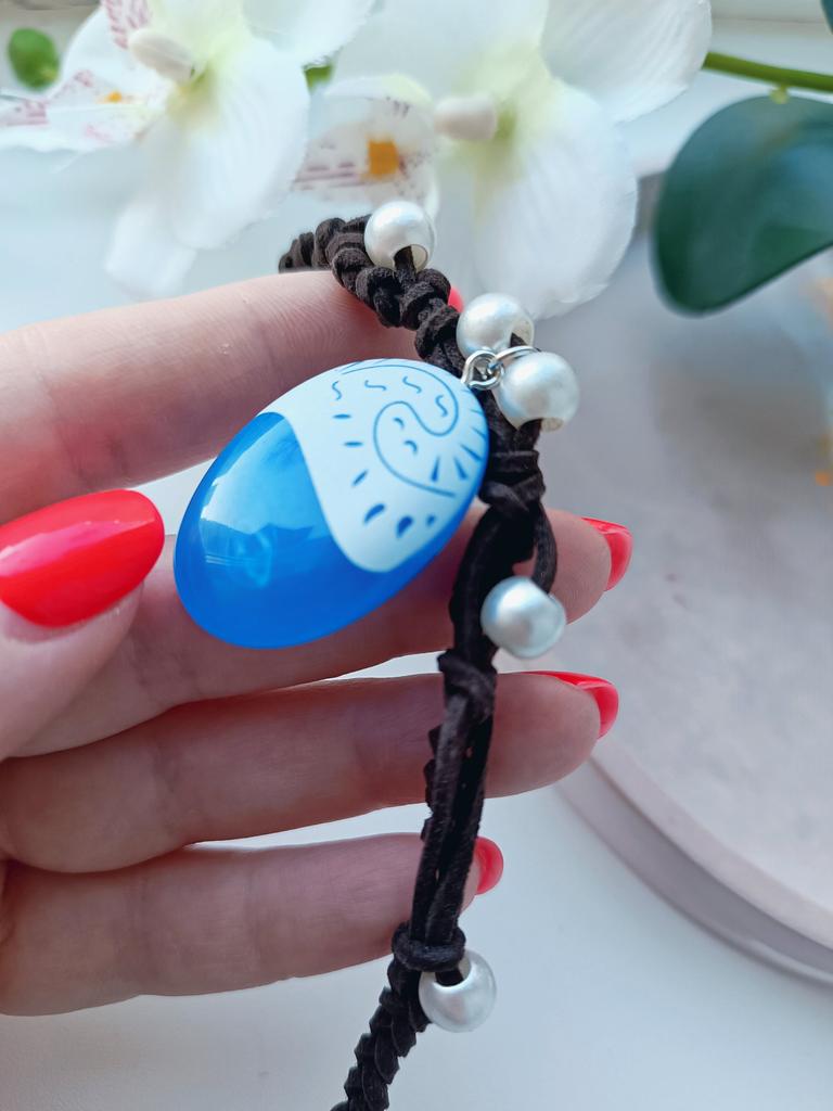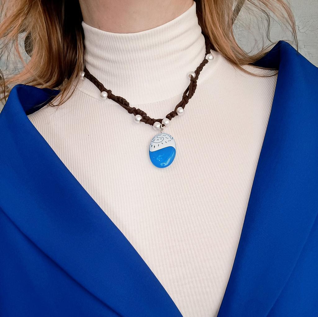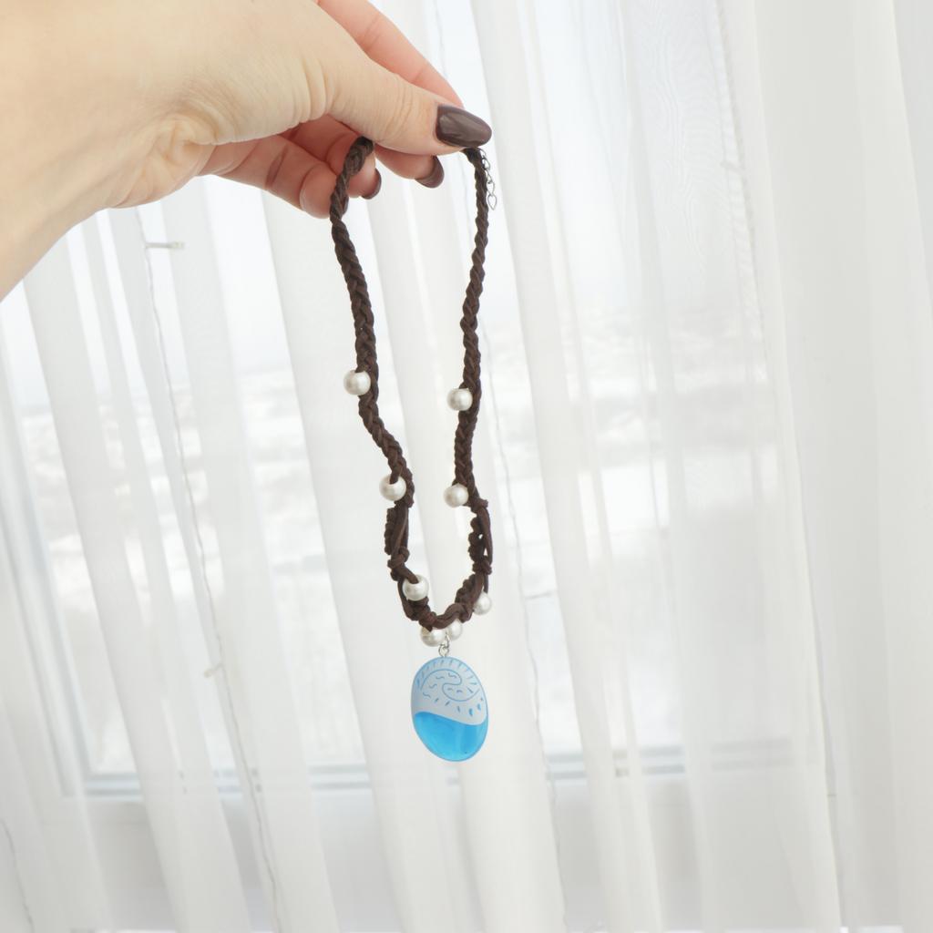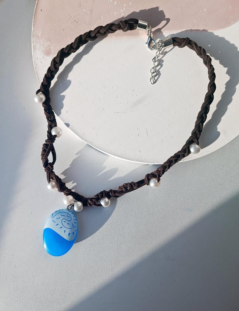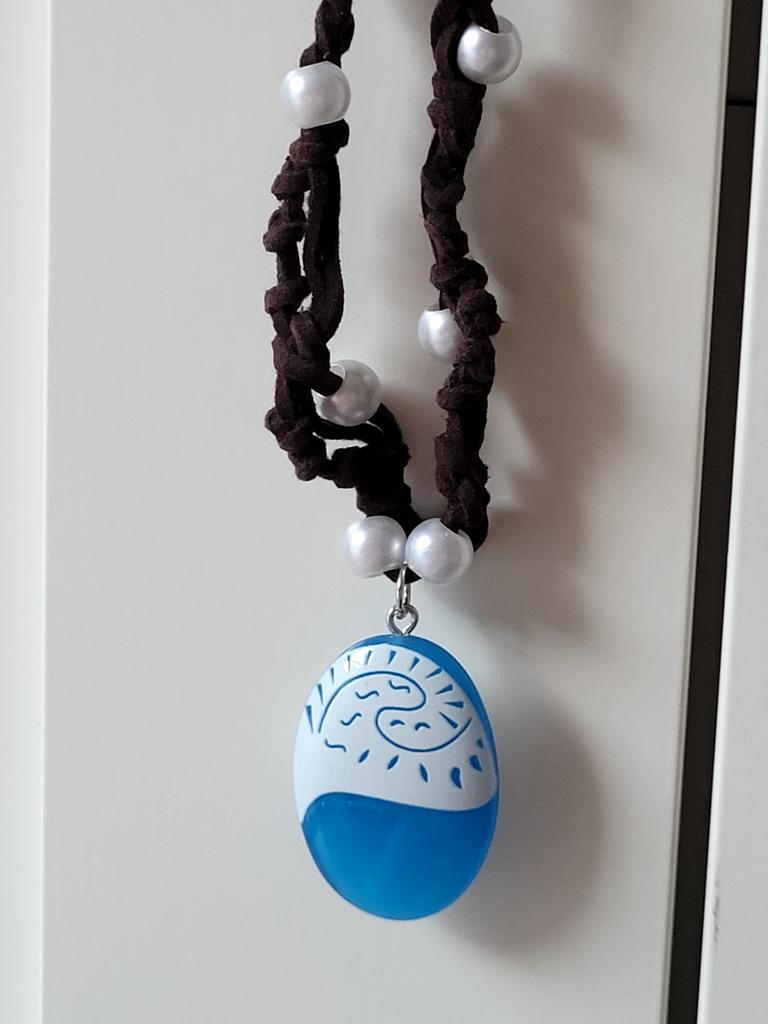 Cosplay necklace inspired by the animated film "Moana" by MINISO. The necklace features a hand-braided leather cord, which gives it a natural and unique look.. Especially suitable for women and girls who love jewelry with a unique style and accessories inspired by beloved characters. A fashionable and useful accessory that will upgrade any look and give it a special touch.