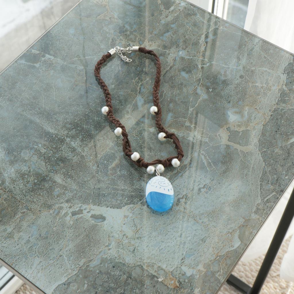 MINISO Anime Movie Princess Moana Necklace Cosplay Handmade Braided Leather Rope Necklace for Women Girl Jewelry Prop Accessories