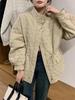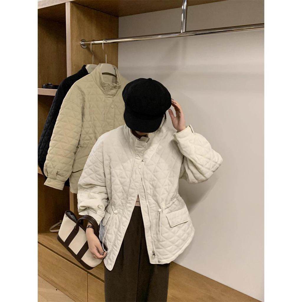 Korean-Style Diamond Pattern Lightweight Down Cotton Jacket for Women - Stand Collar, Waist-Cinching, 2025 Autumn/Winter Collection