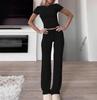 Experience comfort and style with this women's spring two-piece set, featuring a short-sleeve top and long pants. Crafted from high-quality polyester, this set offers a soft and breathable feel, perfect for any casual occasion. The solid color and sportive style create a versatile look that can be dressed up or down, making it an essential addition to your wardrobe.