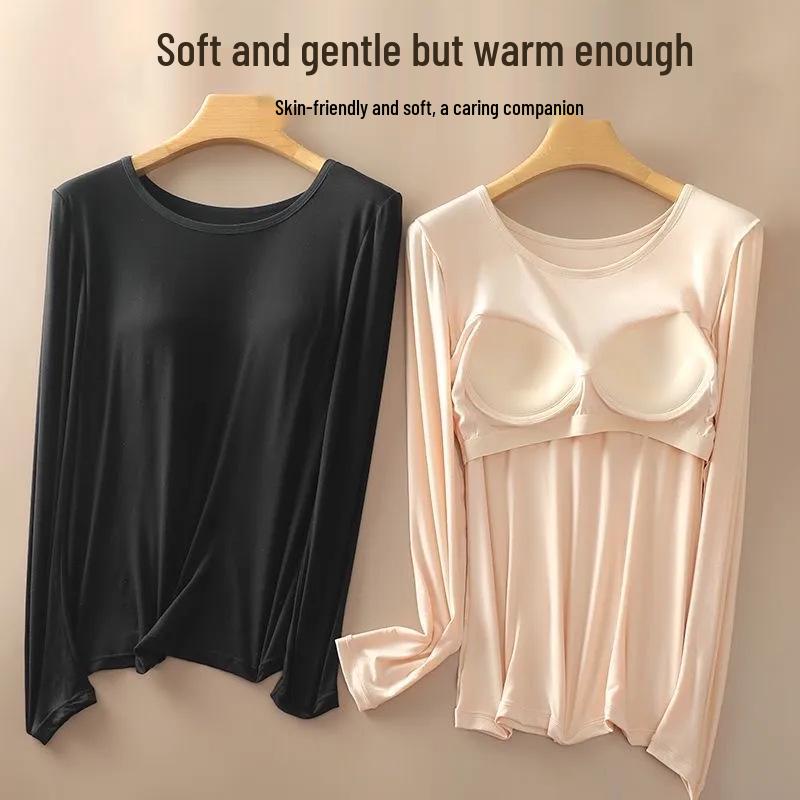 Experience ultimate comfort and support with our Modal Long Sleeve Thermal Undershirt featuring a built-in padded bra for women. Crafted from premium viscose material, this undershirt is both soft and breathable, ensuring a cozy fit. The round neckline adds a touch of elegance, making it suitable for layering or wearing on its own. Designed to be a versatile wardrobe staple, it is perfect for any season, including autumn, winter, spring, and summer. Whether you're lounging at home or heading out, this thermal undershirt provides the perfect balance of warmth and style.