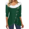 Autumn Winter Fur Collar Sequins Irregular Christmas T-shirt Women Long Sleeve Patchwork Buttons Pullover Top