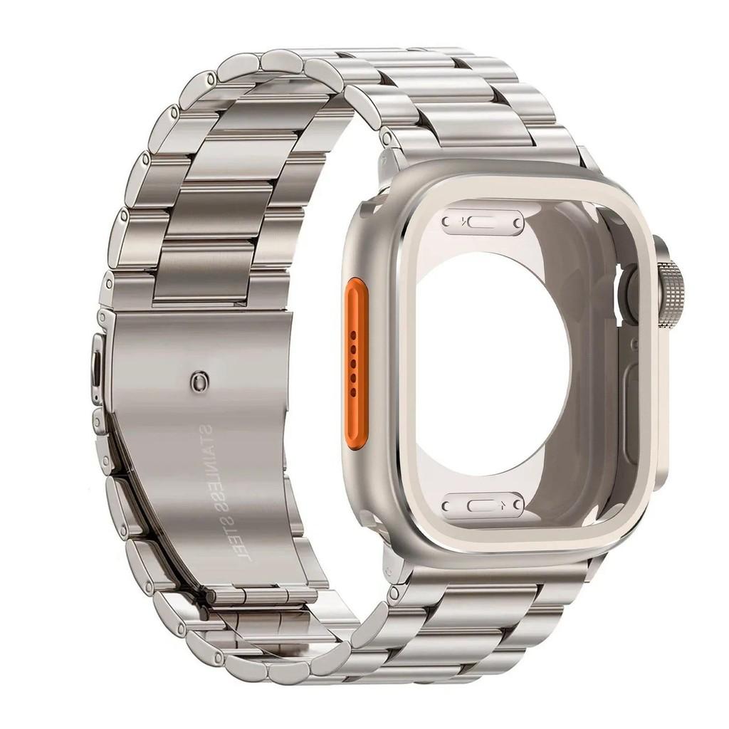 Alloy Case+Stainless Steel Strap For Apple Watch Ultra 2 1 49mm 46mm 45mm 44mm Hollow Out Protective Cover For Iwatch 10 9 8 7 6