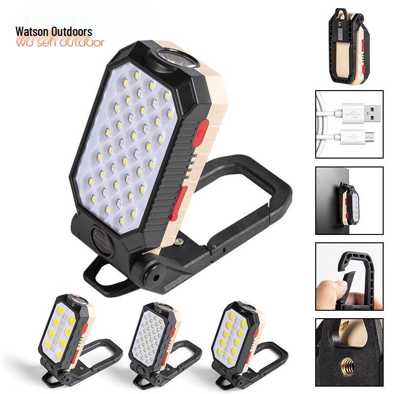 COB LED Handheld Work Light with USB Charging, Magnet Hook, and Emergency Flashlight for Outdoor and Auto Repair.