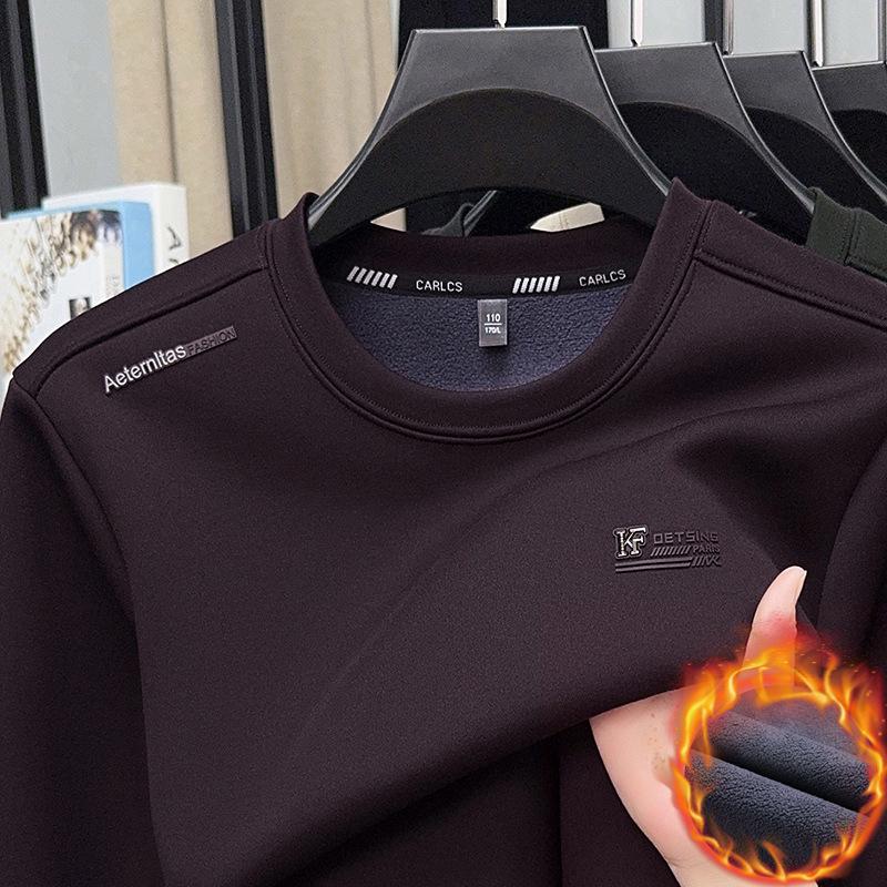 Embrace warmth and style with this fleece-lined men's sweatshirt, perfect for the winter season. Crafted from soft, skin-friendly polyester fiber, this sweatshirt offers exceptional comfort throughout the day. Featuring a solid pattern and a classic round neckline, it effortlessly combines functionality with a modern aesthetic. Ideal for layering or wearing on its own, this long-sleeved T-shirt is a versatile addition to any wardrobe.