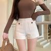 Women's Temperament White Tweed High Waist Wide Leg Pants - Petite Slimming Bootcut for Autumn/Winter