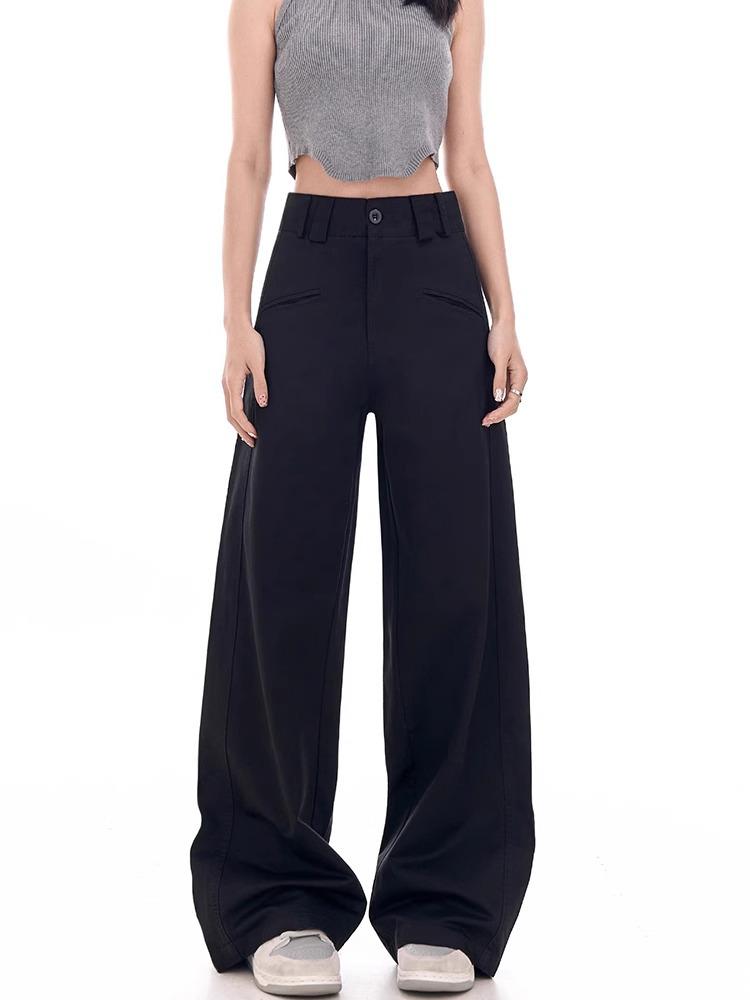 Women's Plus Size High-Waisted Black Wide-Leg Summer Pants - Loose, Slimming, Floor-Length