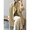 Women's British Style Retro Trench Coat with Stand-Up Collar - Tie Waist, Mid-Length, Petite Fit, Loose Outerwear for Spring & Autumn.