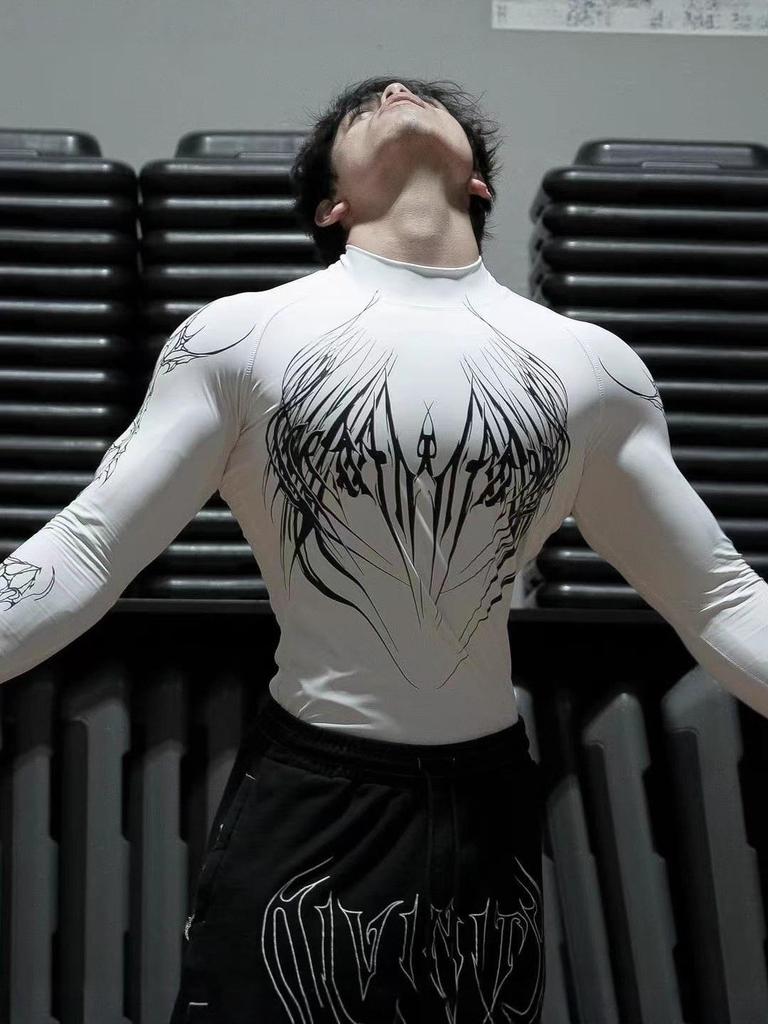 Experience ultimate comfort and style during your workouts with this compression long sleeve men's fitness shirt. Designed with a quick-dry and elastic polyester fiber, it provides excellent moisture-wicking capabilities, ensuring you stay dry and comfortable even during intense exercises. The shirt features a unique pattern decoration, adding a touch of flair to your sportswear collection. Perfect for various fitness activities, this durable and breathable shirt enhances performance while offering a sleek, sporty look.