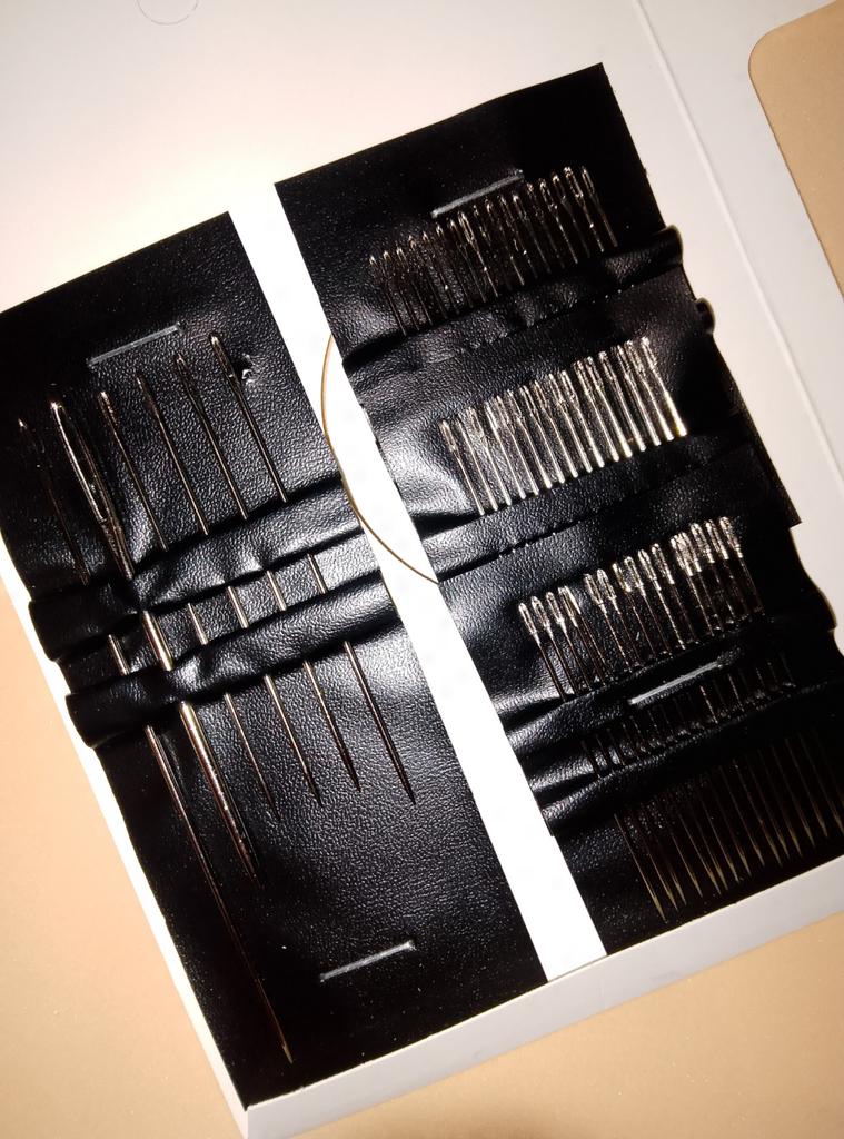 Set of sewing needles Quantity 36 pieces Ordinary needles, but in a large quantity) Thin, there are large-sized needles Under heavy load or with thick, difficult-to-penetrate fabric, small needles may break. The packaging is made with soul) Everything is very neat I use with pleasure