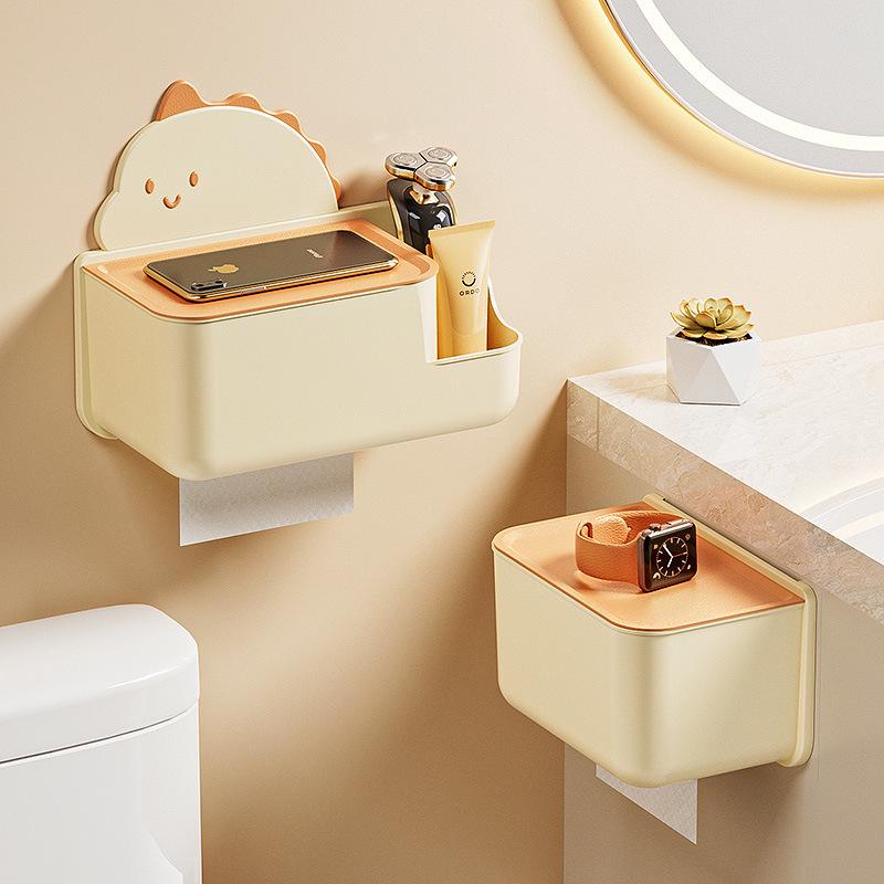 Wall-Mounted Punch-Free Cartoon Tissue Dispenser for Bathroom, Kitchen, and Living Room