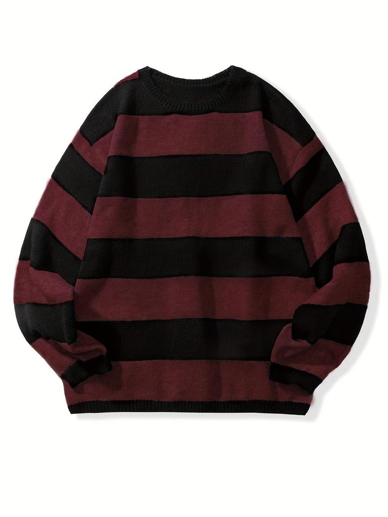 Men's Retro Wool Knitwear: Color Block Striped, Round Neck, Soft & Cozy, Loose Fit, Autumn/Winter Edition.