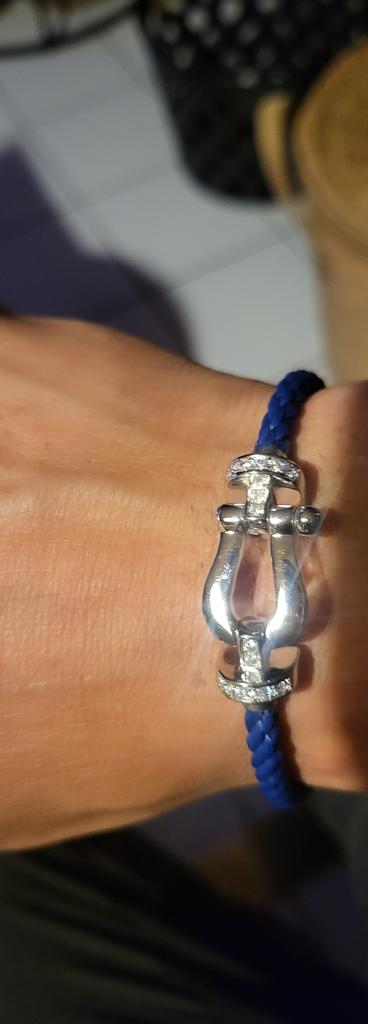 Fred Horseshoe Diamond-Set 18k Gold & Stainless Steel Bracelet - Luxurious Couple's Style for Men and Women, Large Size.