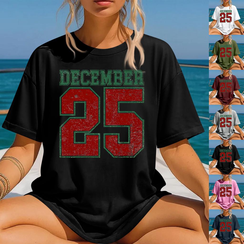 Women's Fashion Printed Round Neck Short Sleeve T-Shirt Pullover Top