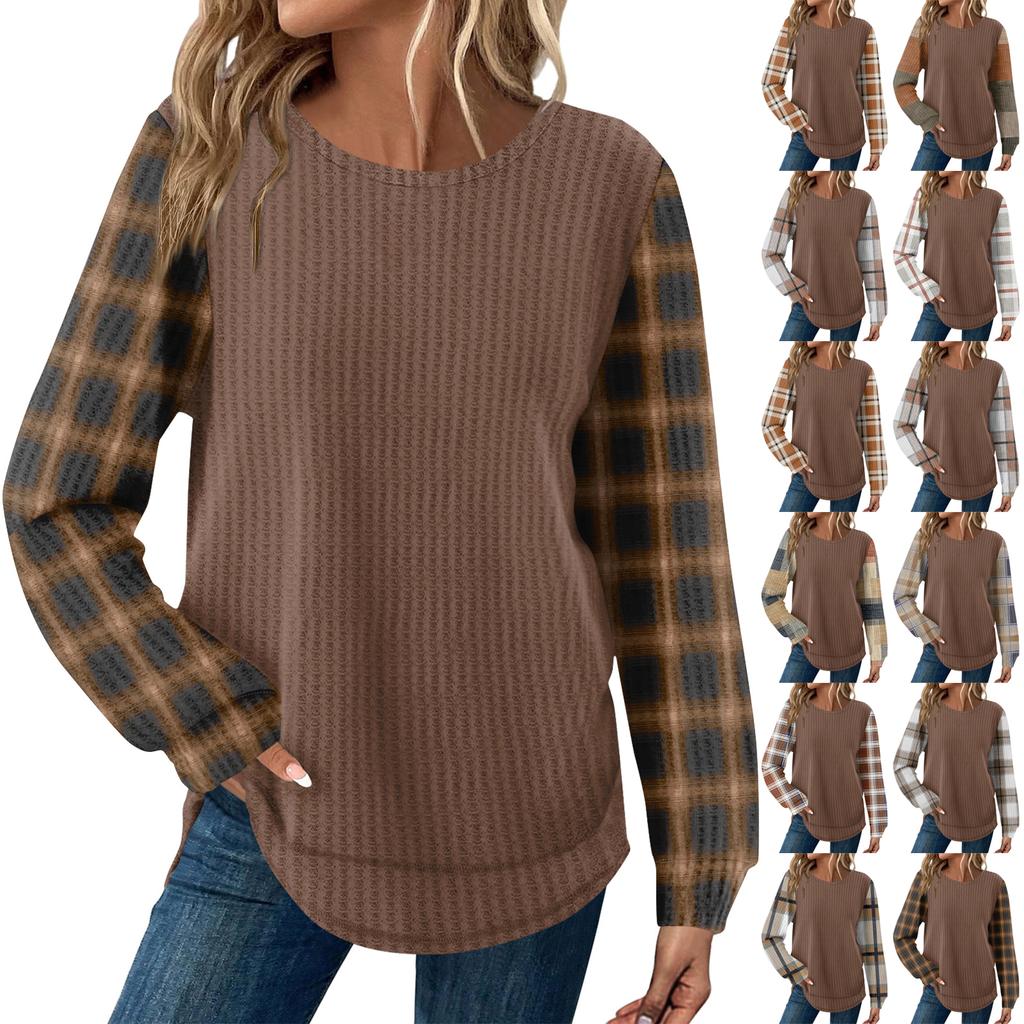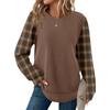 Women's Plaid Print Round Neck Long Sleeve Casual Loose Top