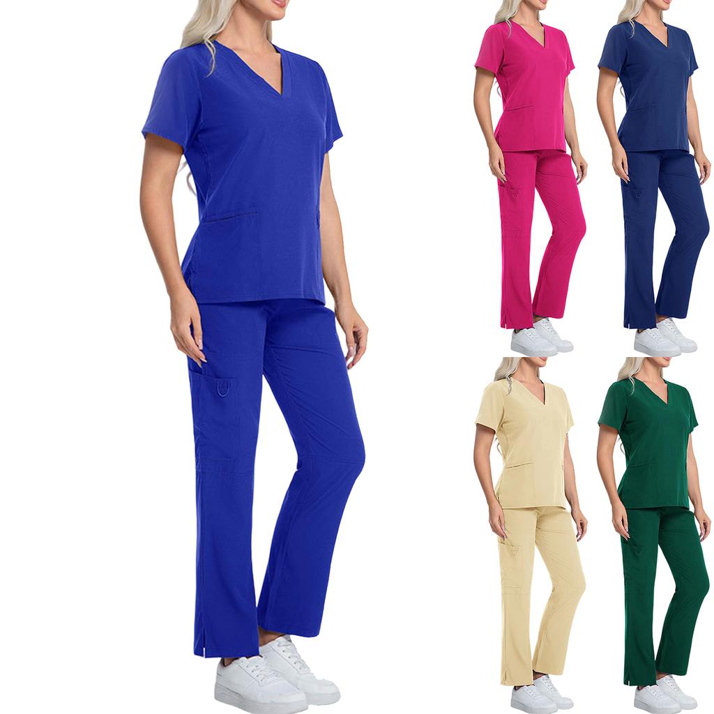 Ladies' Comfortable And Casual Solid Color Short Sleeved Pants Protective Suit Set