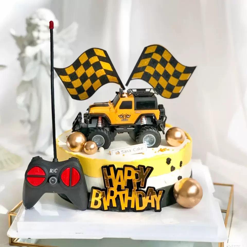 Remote-Control Off-Road Vehicle Cake Decoration for Boys' Birthday – Racing Flag Insert Cards