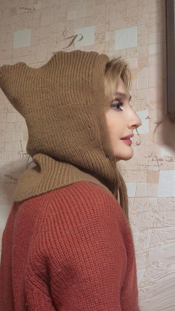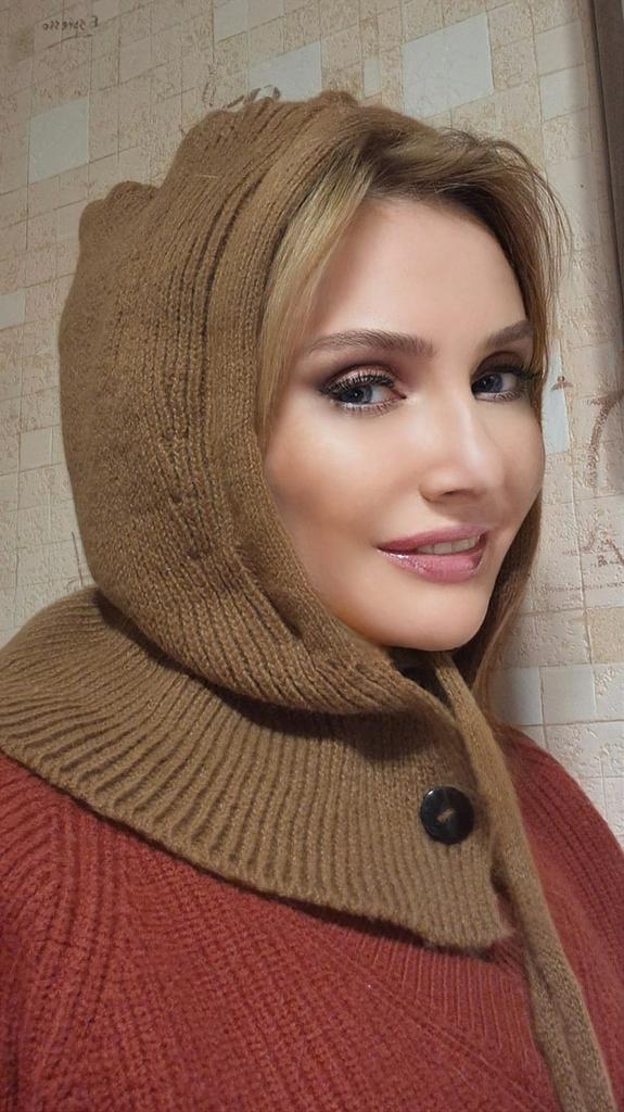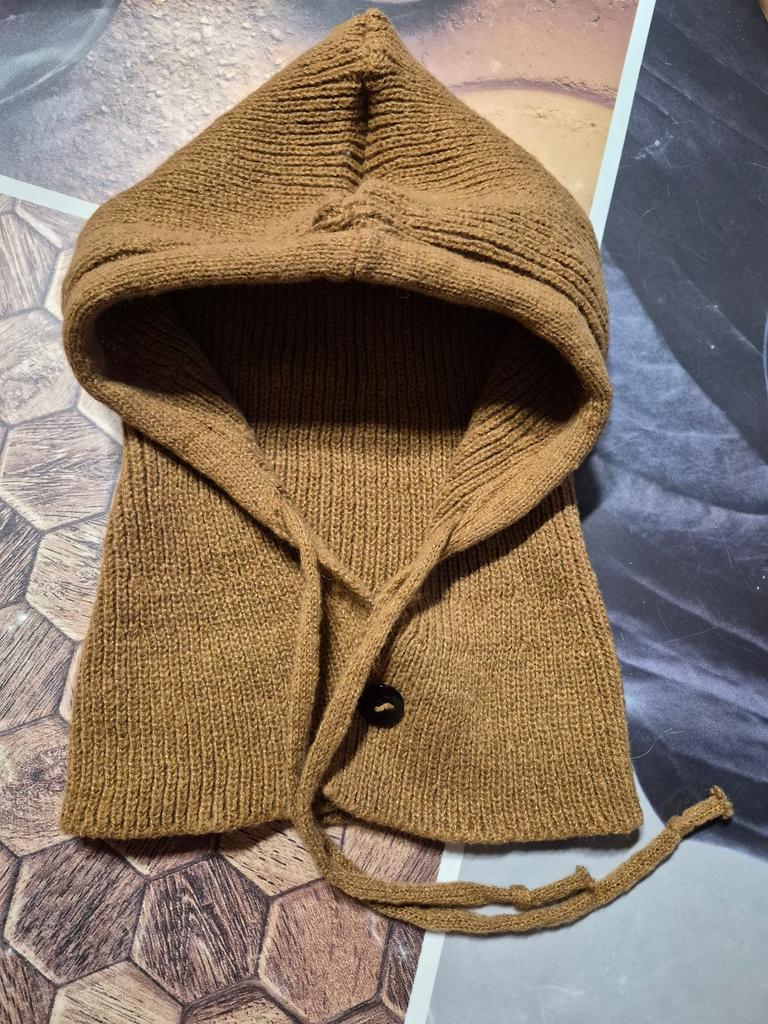 Knitting Hat Solid Color Buttons Closure Drawstring Hooded Scarf Women Winter Warm Windproof Elastic Thermal Hat