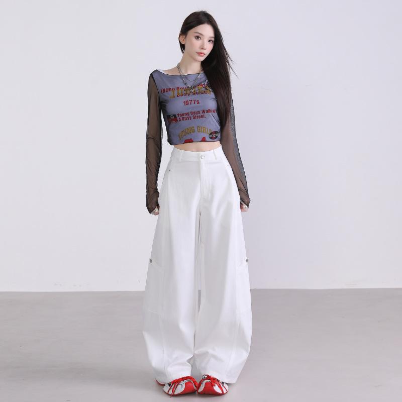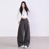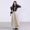 Step into style and comfort with these chic spliced wide-leg cargo pants, perfect for the autumn season. Made entirely from durable denim, these pants feature a flattering high waistline that accentuates your silhouette. The standout large pockets not only add a touch of edgy decoration but also provide practicality, ensuring you can carry your essentials with ease. Ideal for the fashion-forward woman, these pants blend functionality with modern design for a versatile addition to your wardrobe.