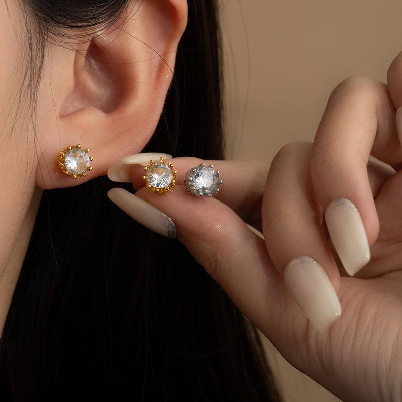 Crown Zircon Black Twist Stud Earrings for Women - Korean Style, Simple, and Elegant