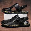 Large Size Sandals Men's Hand-sewn Breathable Casual Beach Shoes Men's Soft-soled Crocodile Pattern Roman Sandals