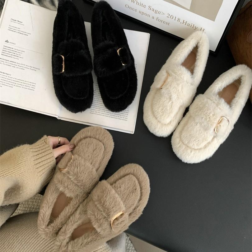 Mao Mao Shoes Women's Outer Wear 2025 Autumn and Winter New Pregnant Women One-pedal Lazy Cotton Shoes Plush Bean Shoes Single Shoes