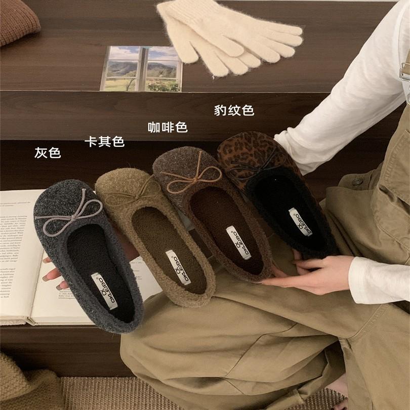 Sweet Bow Fluffy Shoes for Women's Outer Wear 2025 Autumn and Winter New Flat Bottom, Light, Comfortable and Warm Mary Jane Cotton Shoes