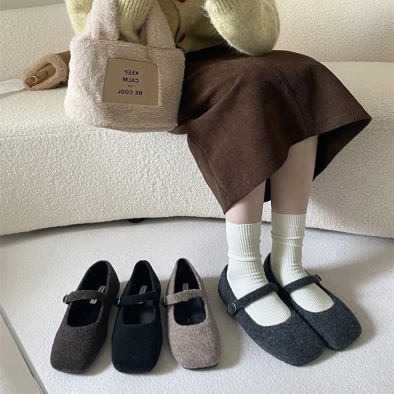 Flat-bottomed Korean Version of Mary Jane Single Shoes Women's Shoes 2025 New Autumn and Winter Black Gentle Versatile Plush Shoes