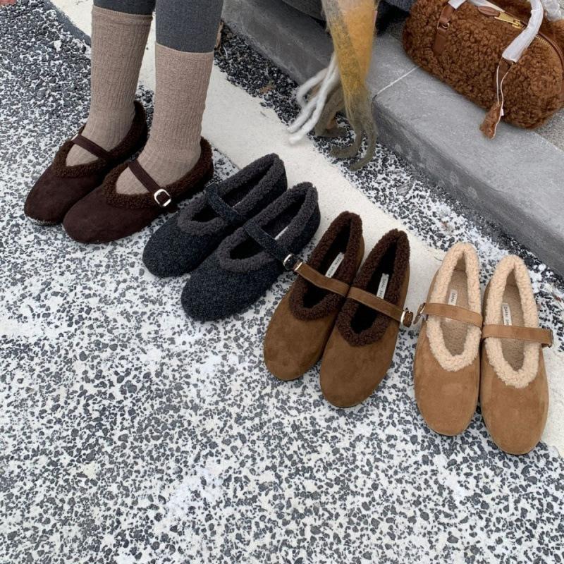 2025 Autumn and Winter Catwalk Model Flat Lamb Wool Mary Jane Ballet Shoes Sweet Cool Fairy Wind Fluff Shoes Female Warm