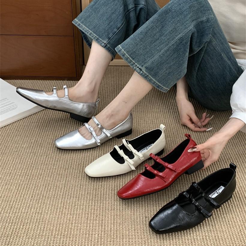Spring 2025 New French Mary Jane Shoes Double Bow Square Head Shallow Mouth Temperament Flat Bottom with Skirt Single Shoes