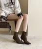 High-heeled Pointed-toed Temperament Suede Thin Short Boots Women's Shoes 2025 New Autumn and Winter Thin-heeled Korean Small Ankle Boots