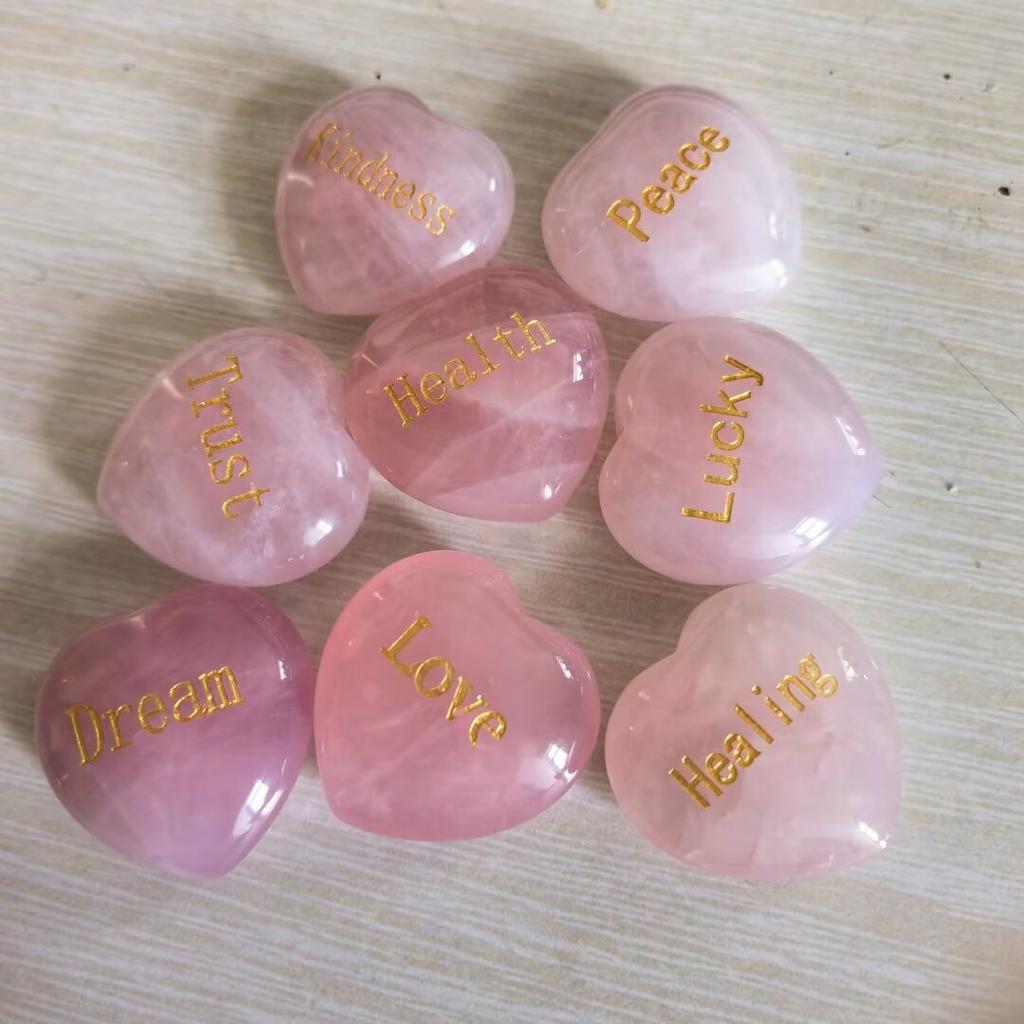 Random1pcs Rose Quartz Heart Inspirational Stone Engraved Love Natural Pink Crystal Valentine's Day Gifts