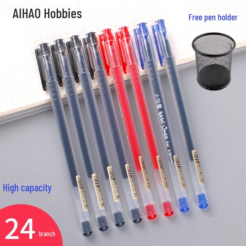 Student Use Ballpoint Pen - 0.35mm Water-Based Black, Red, Blue-Black Ink, Large Capacity