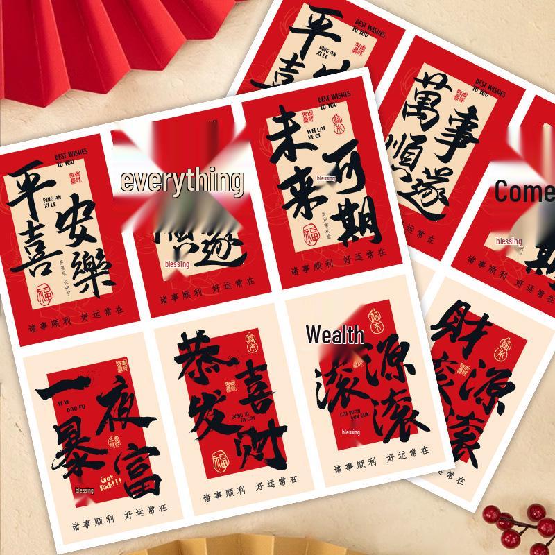 Ancient Style Calligraphy Stickers & Fruit Gift Box: Peace, Joy, Prosperity
