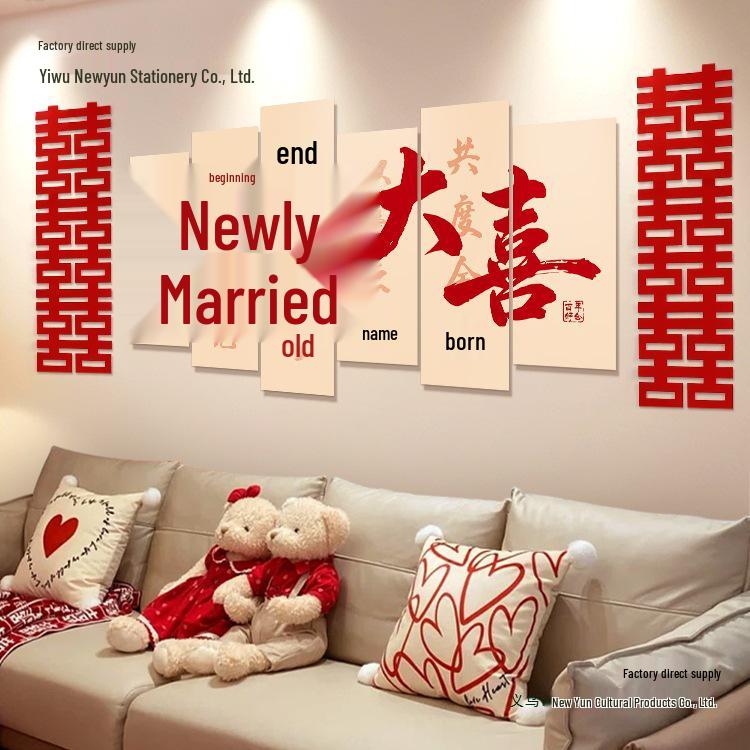 Wedding Decorative Set: Double Happiness Wall Art for Bedroom & Living Room