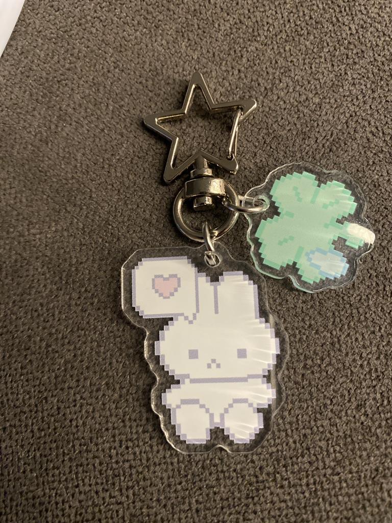 Pixel Cute Rabbit & Cat Clover Pendant Keychain - Creative Backpack Accessory Gift for Bestie