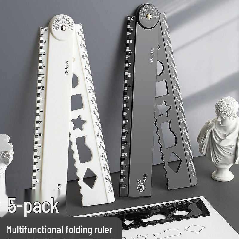 30cm Multifunctional Folding Ruler for Students: Straight Edge with Wavy Line Grid for Geometric Drawings