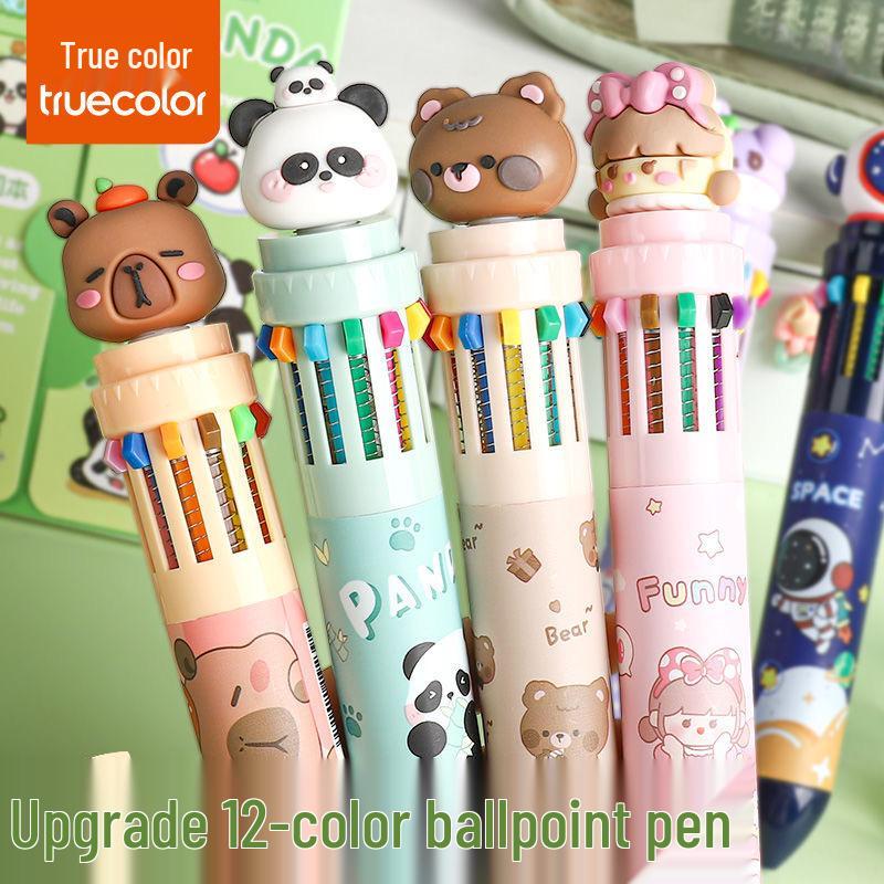 12-Color Push-Button Gel Pen Set - Multicolor Cartoon Ballpoint and Marker for Students