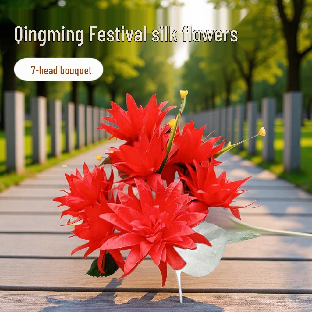 Chrysanthemum Qingming Festival Silk Bouquet: 7 Simulated Silk Flowers for Ancestor Worship and Cemetery Placement