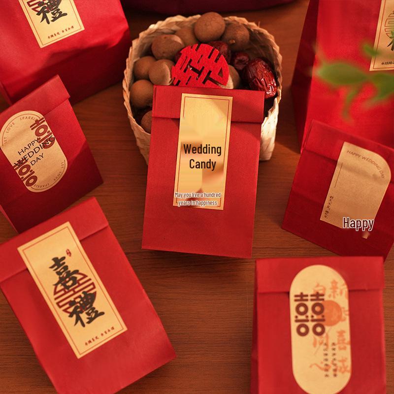 Douyin Chic Candy Gift Box: Retro Chinese Wedding Engagement Red Kraft Bag