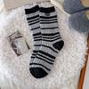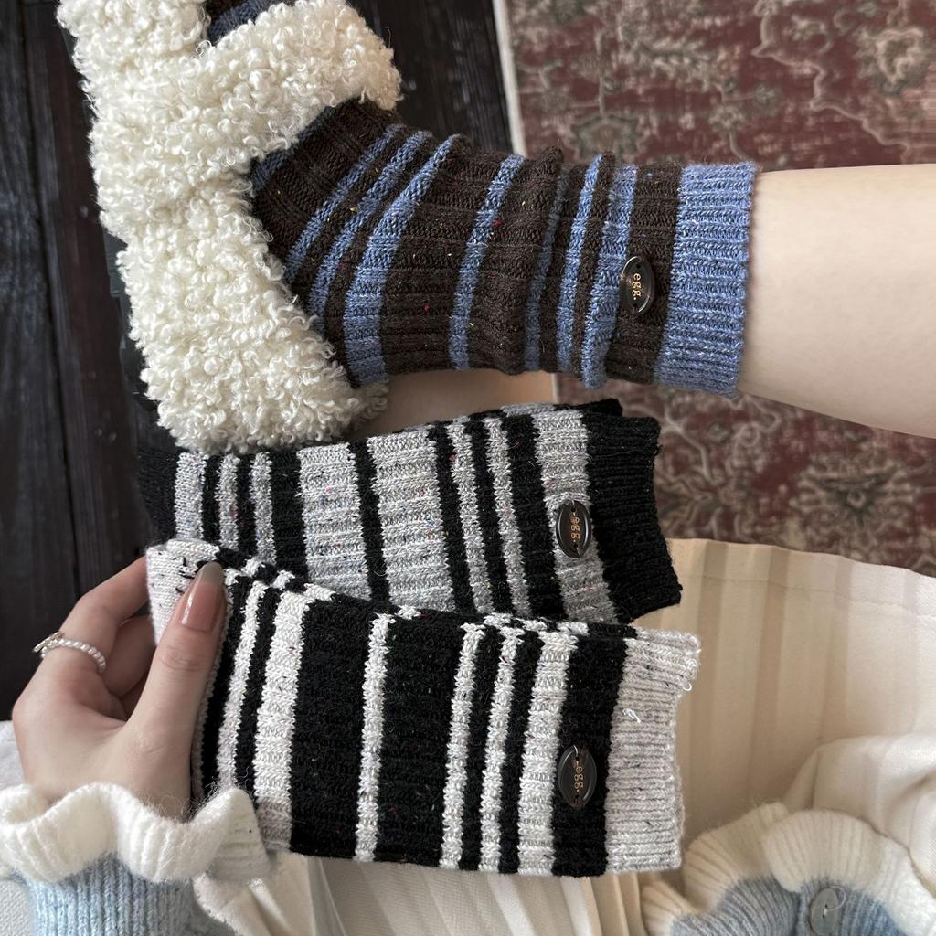 Women's Autumn and Winter Warm Trend Idea Yarn Matching Color Stripe Button Wool Mid Tube Socks