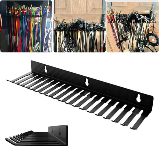 Wall Mountable Cable Hanger 14/19 Slots Metal Cable Holder Black Cord Rack Organizer Width from 5.5 To 9.5mm for Cord Management Studio Storage