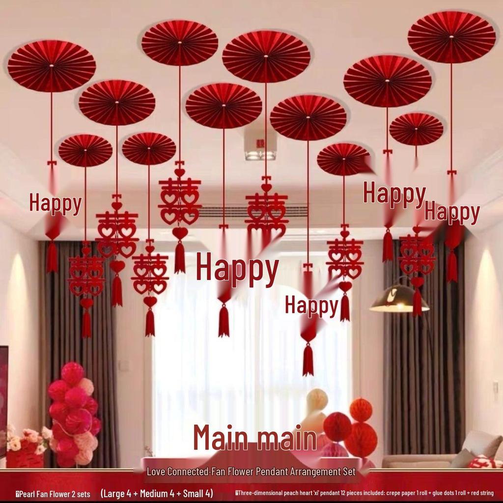 Double Happiness Wedding Room Decoration Set with Butterfly Accents for Living Room and Bedroom